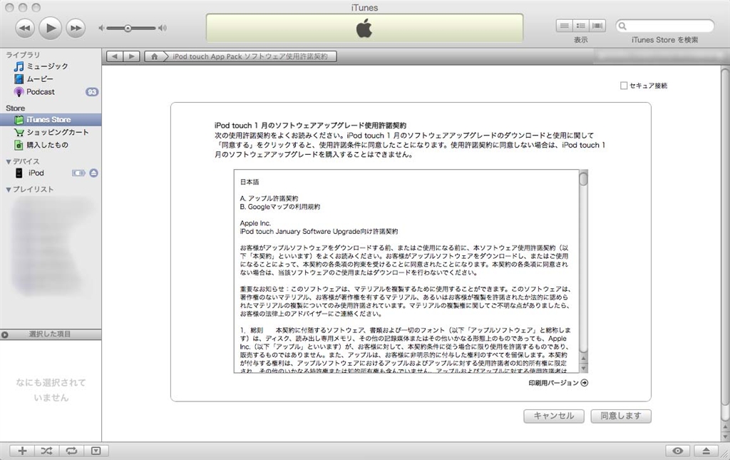 『同意できたら同意をクリック(同意しないと買えないけど・・・)』Apple iPod touch MA627J/A (16GB) Nice?さんのクチコミ掲示板画像3/3