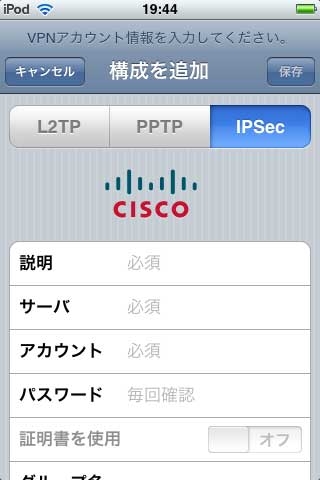 『IPSec設定画面』Apple iPod touch MA627J/A (16GB) ぶるちさんのクチコミ掲示板画像1/1
