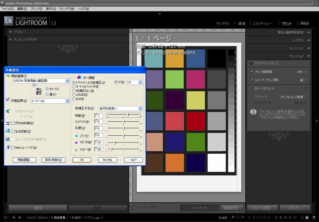 『B LR:プリンタで管理 プリンタ:ドライバで補正(明+7 M-15』Adobe Adobe Photoshop Lightroom EOSデジさんのクチコミ掲示板画像2/4