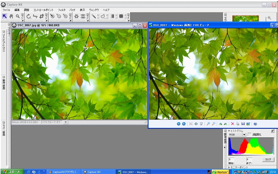 『CaptureNXイメージウインドウと同じ写真をWindowsビューアで見たとき』ニコン Capture NX もっけださんのクチコミ掲示板画像1/1