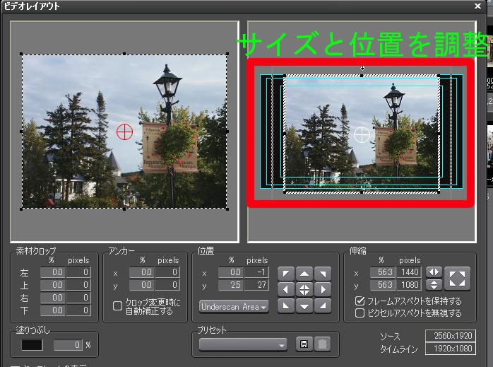 『01 サイズと位置を調整』カノープス EDIUS Pro 5 カボスで焼酎さんのクチコミ掲示板画像1/4