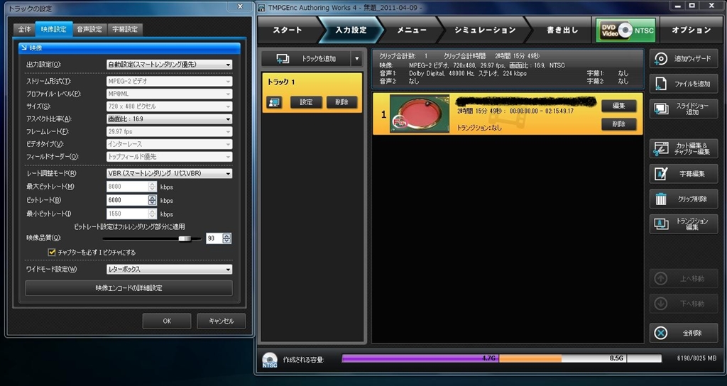 『1、HD素材をDVDに・・・その設定。』ペガシス TMPGEnc Authoring Works 4 マジ困ってます。さんのクチコミ掲示板画像1/4