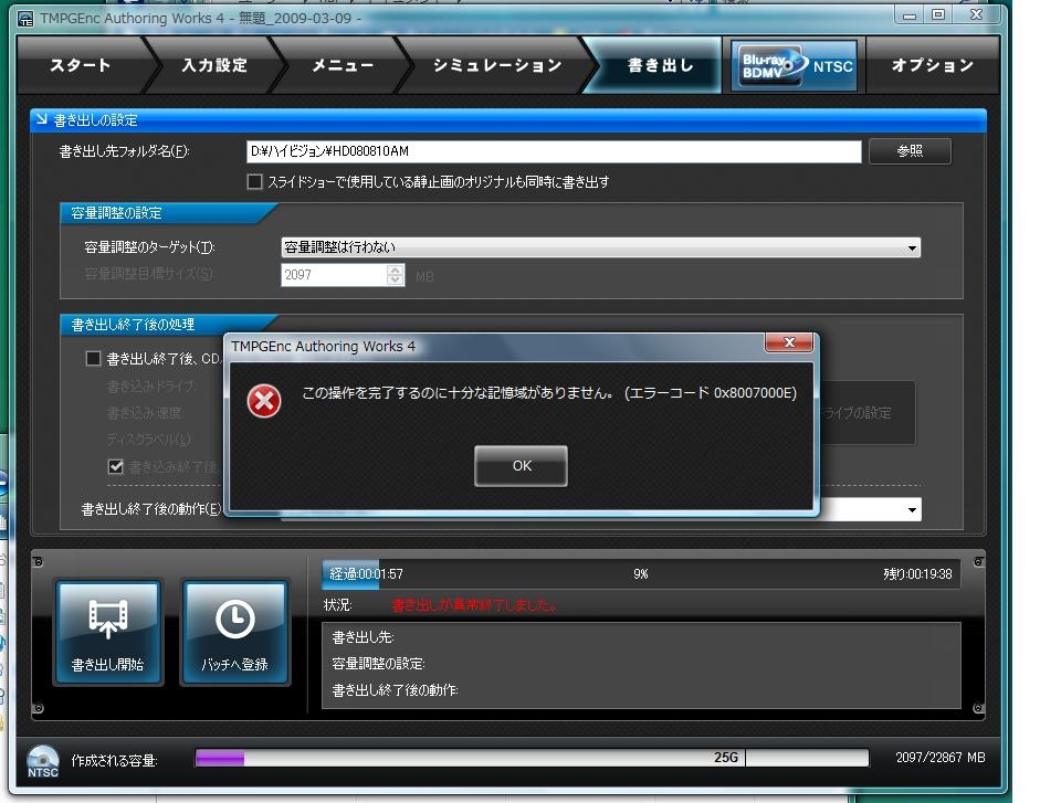 『エラーメッセージ』ペガシス TMPGEnc Authoring Works 4 194kmさんのクチコミ掲示板画像1/2