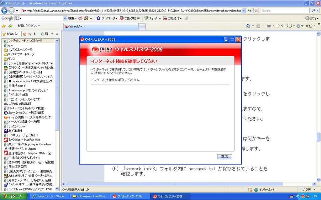 『エラー表示画面』トレンドマイクロ ウイルスバスター2008 1年版 kgsanさんのクチコミ掲示板画像1/1