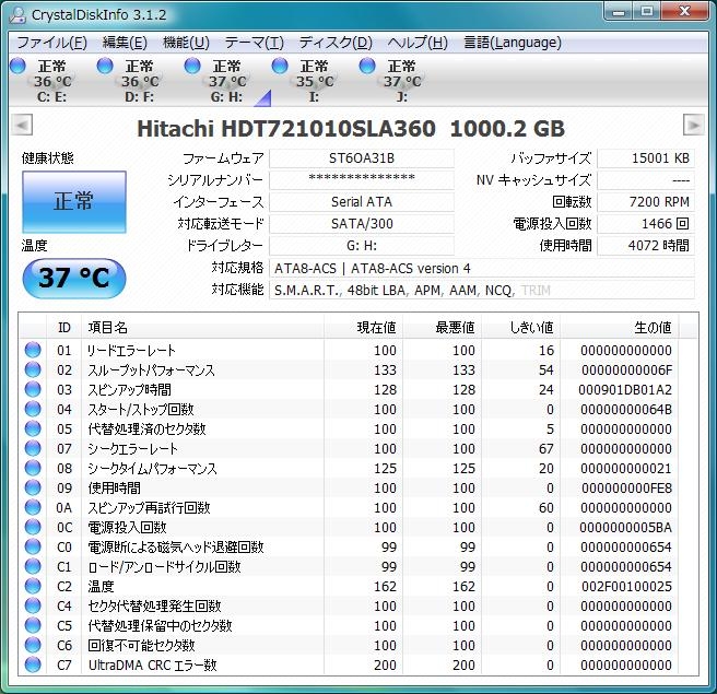 『1年程使用の1TB』HGST HDT721010SLA360 (1TB SATA300 7200) kazu-pさんのクチコミ掲示板画像1/1
