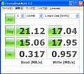 単に測定環境の問題。このHDの素の速度の1/10以下だから、このディスクの速度を語るには、環境が古すぎ。仮に最新PCでもUSB2.0の段階で、参考にならない。