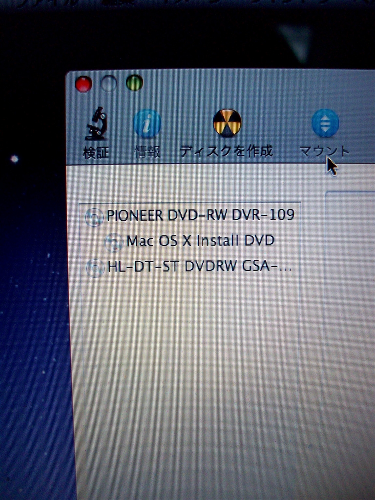 インストーラのディスクユーティリティ