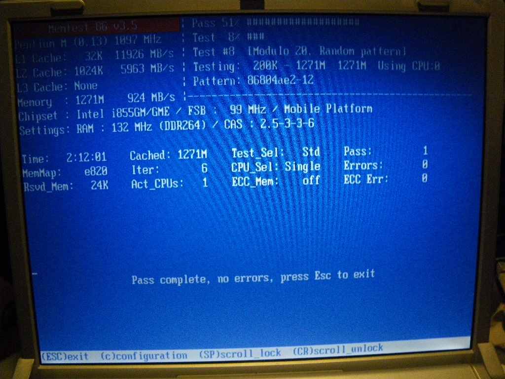 メモリチェックの様子