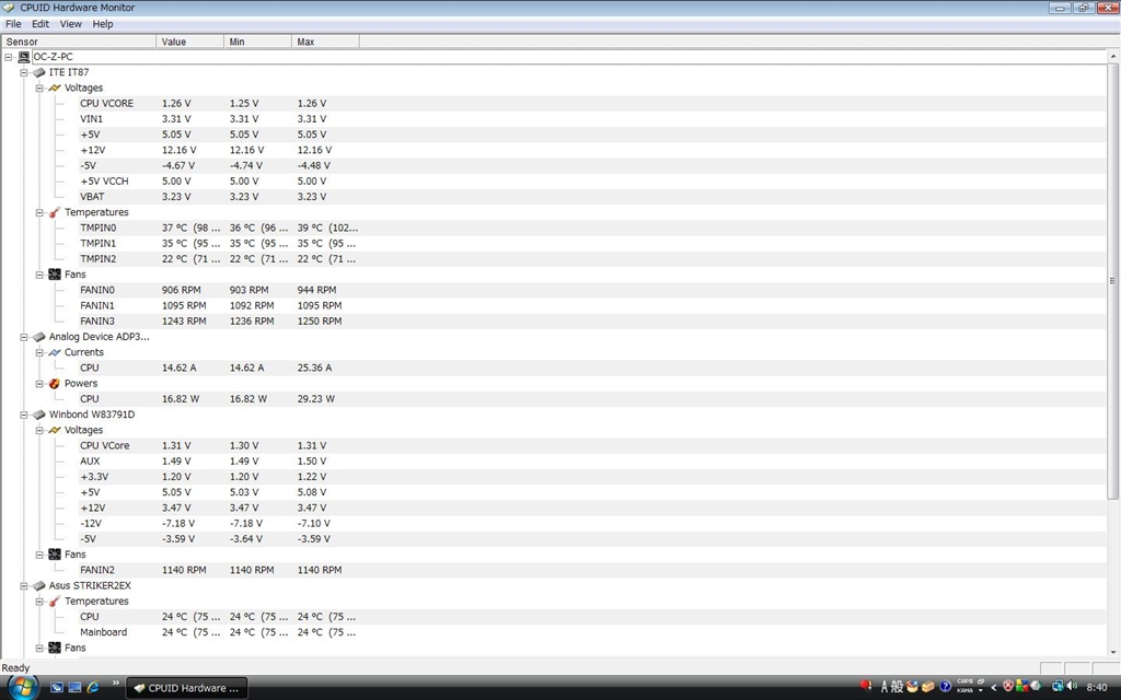 『HWMonitor』ASUS Striker II Extreme 二匹子羊さんのクチコミ掲示板画像1/1
