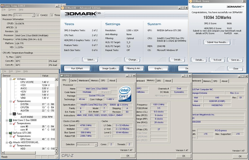 1回目1.48V FSB600*8 3DMARK06