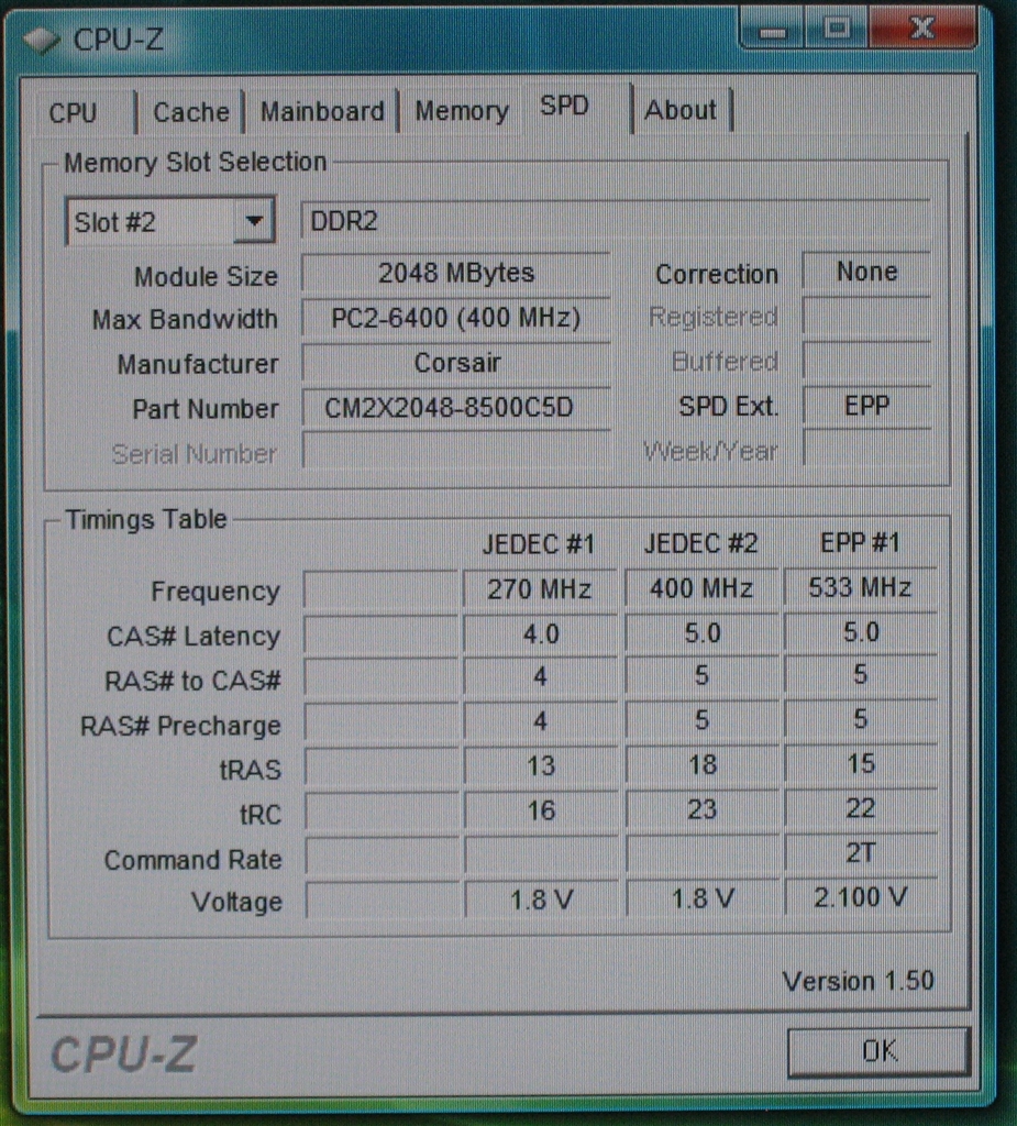 私が使用しているコルセアのメモリの情報です