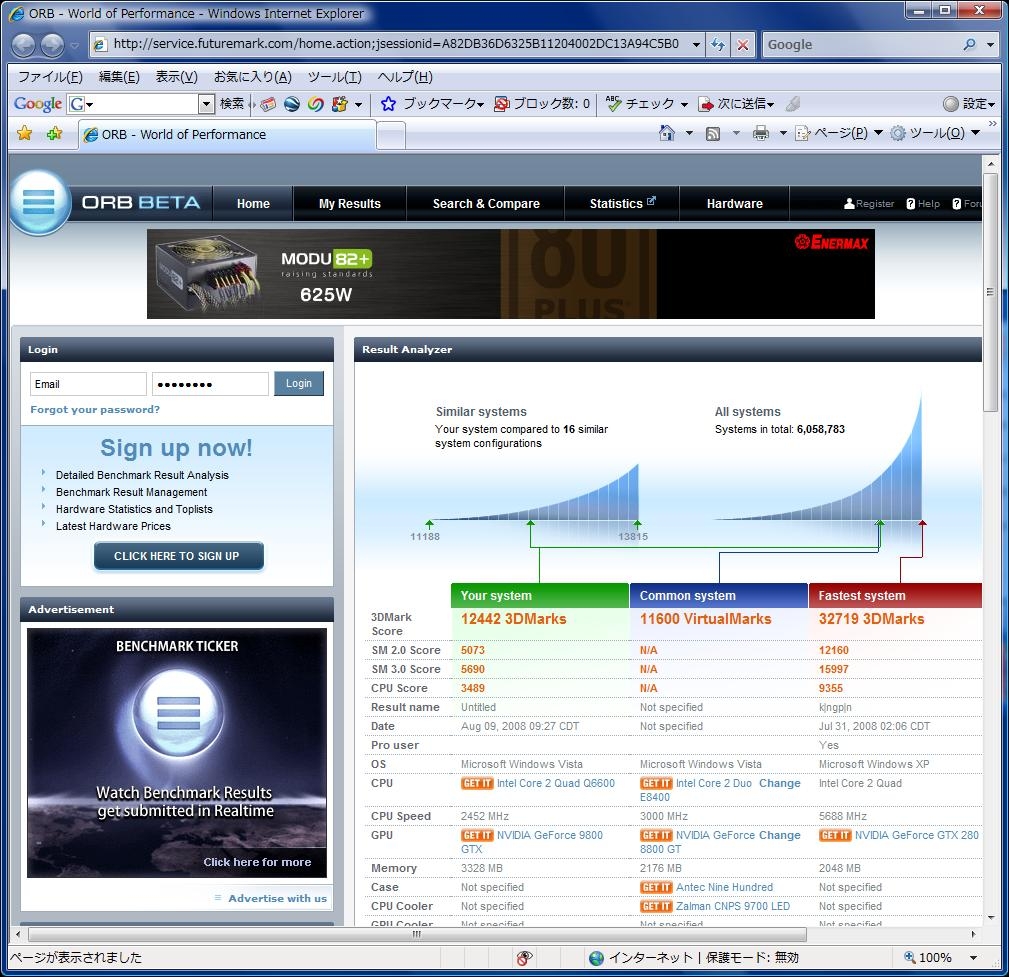 『VISTA_9600GTX+_3DMark06_Q6600_2.4GHz』LEADTEK WinFast PX9800 GTX+ (PCIExp 512MB) yufuruさんのクチコミ掲示板画像1/4