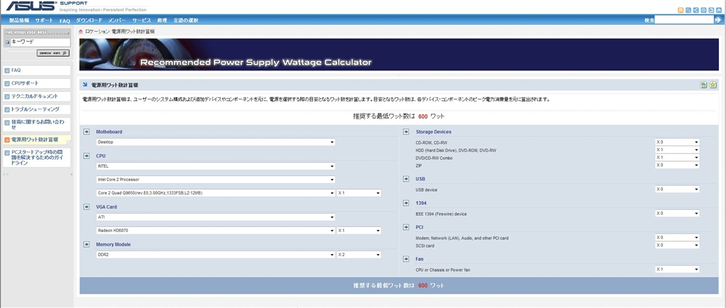 600Wと出ています(マザー分の電力はもっと少ないですが)