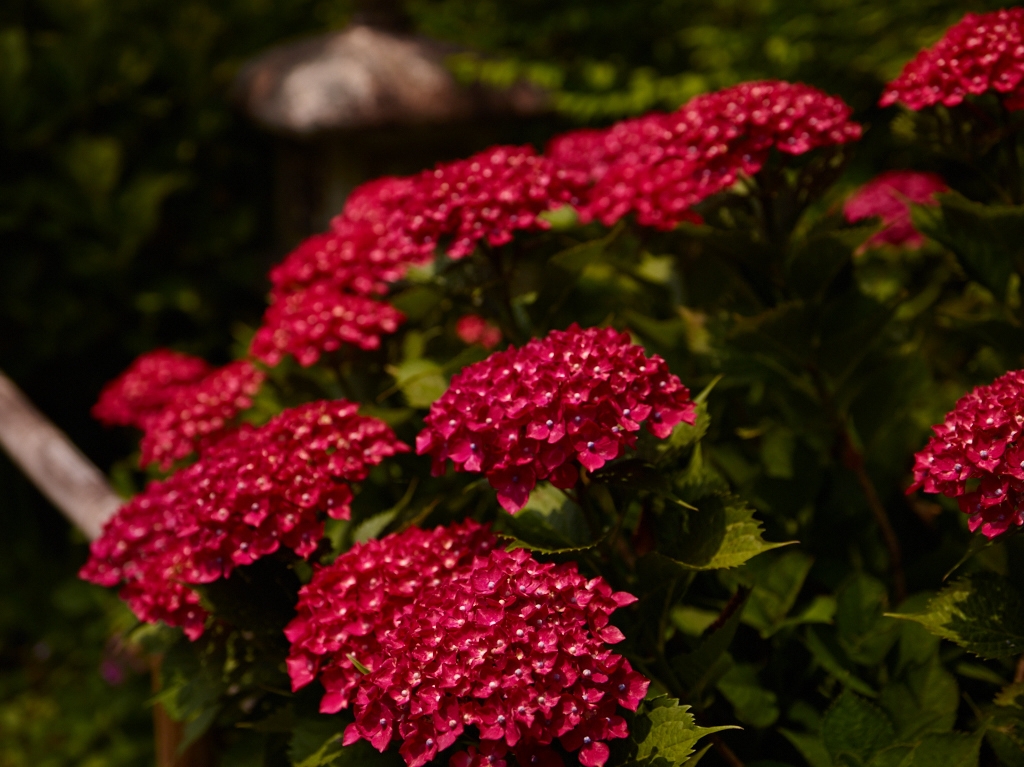梅宮大社の赤いアジサイ…。