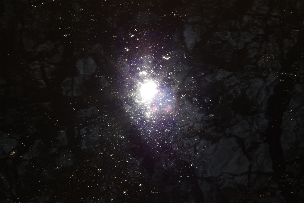 一瞬、銀河系。池の水面、キラキラ、F11。