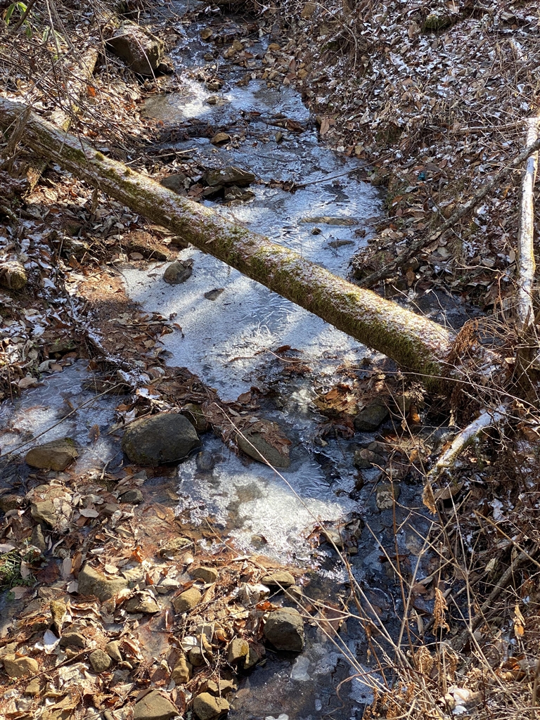 雪はないけど小川は凍ってます