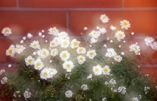 ハナカンザシ。ピントぼかし、多重露光