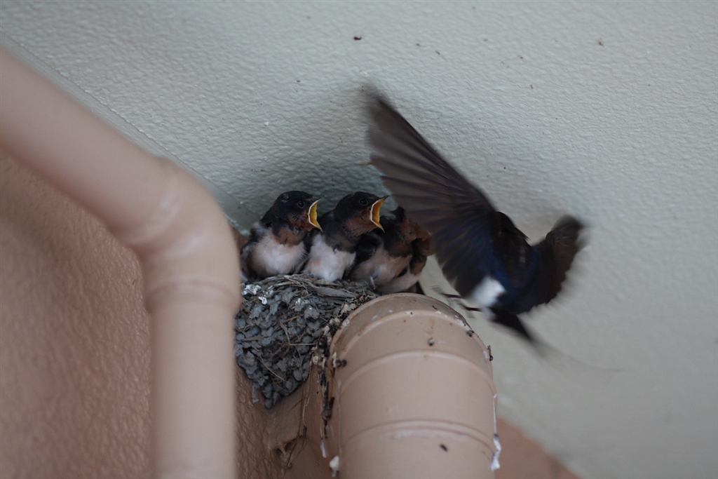 親鳥がくると エサくれ〜
