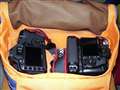 カメラ2機レンズ付きで入るかなあ、と思ってみましたら、あらスンナリ。あと2本は交換レンズ入りそうです。
