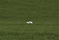 湿原に向かう途中の牧草地に3羽いました。