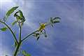 始動2日目、先ほど庭の南天とミニトマトの花を撮ってみました。