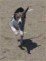 犬を待たせた所でピントを合わせてから撮りたい場所まで追い掛けて連射です。