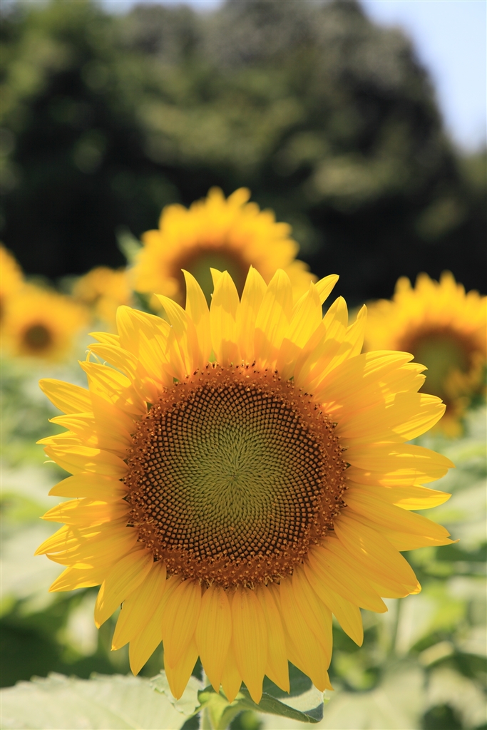 座間ひまわり畑にて、風が強かったです。