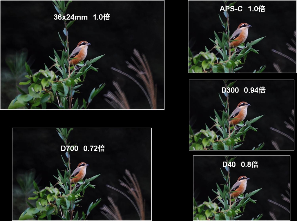 ファインダーの被写体(モズ)の大きさ比較