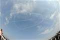 写真はたまたま家の外を飛んでいたブルーインパルスですが、演技飛行の時の距離は似たようなものだと思います。