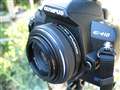 ミラーレスになれば、携帯性に邪魔なペンタ部も無くなりますから、よりコンパクトになります。E-330を更に小型化したイメージでしょうか? 暇つぶしにボティとレンズの組み合わせのイメージを合成写真にしてみました。