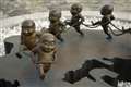 振り袖はふつうに立つと、袖がよれます。