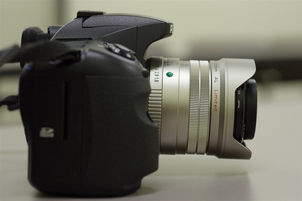 横から.キャップを無視すれば,固定フードの内側に収まります.
