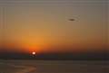 風景写真、ワンポイントの飛行機、アクセント