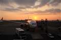 このレンズで撮った夕暮れ〜夜の空港です。