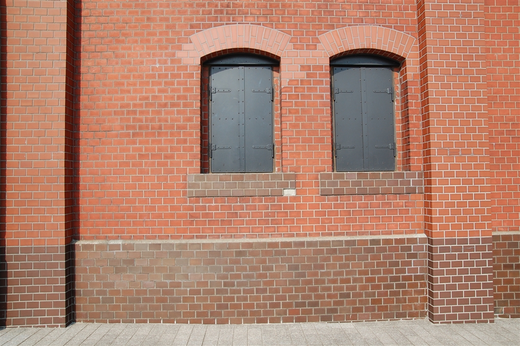 赤レンガ(ゆがみを補正する努力の跡が)