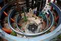 ヒマワリの中に手を入れて撮影です。