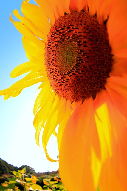 ヒマワリの中に手を入れて撮影です。