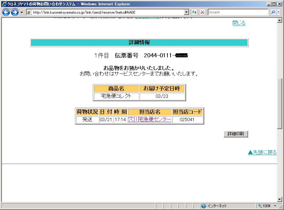 ネコ便問い合わせ