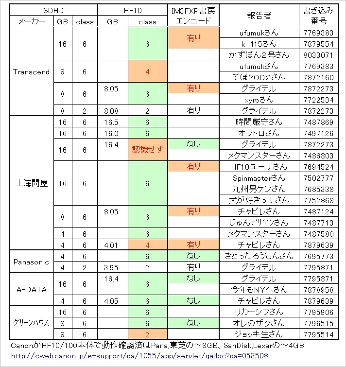 『SDカード対応状況080705』CANON iVIS HF10 グライテルさんのクチコミ掲示板画像1/1