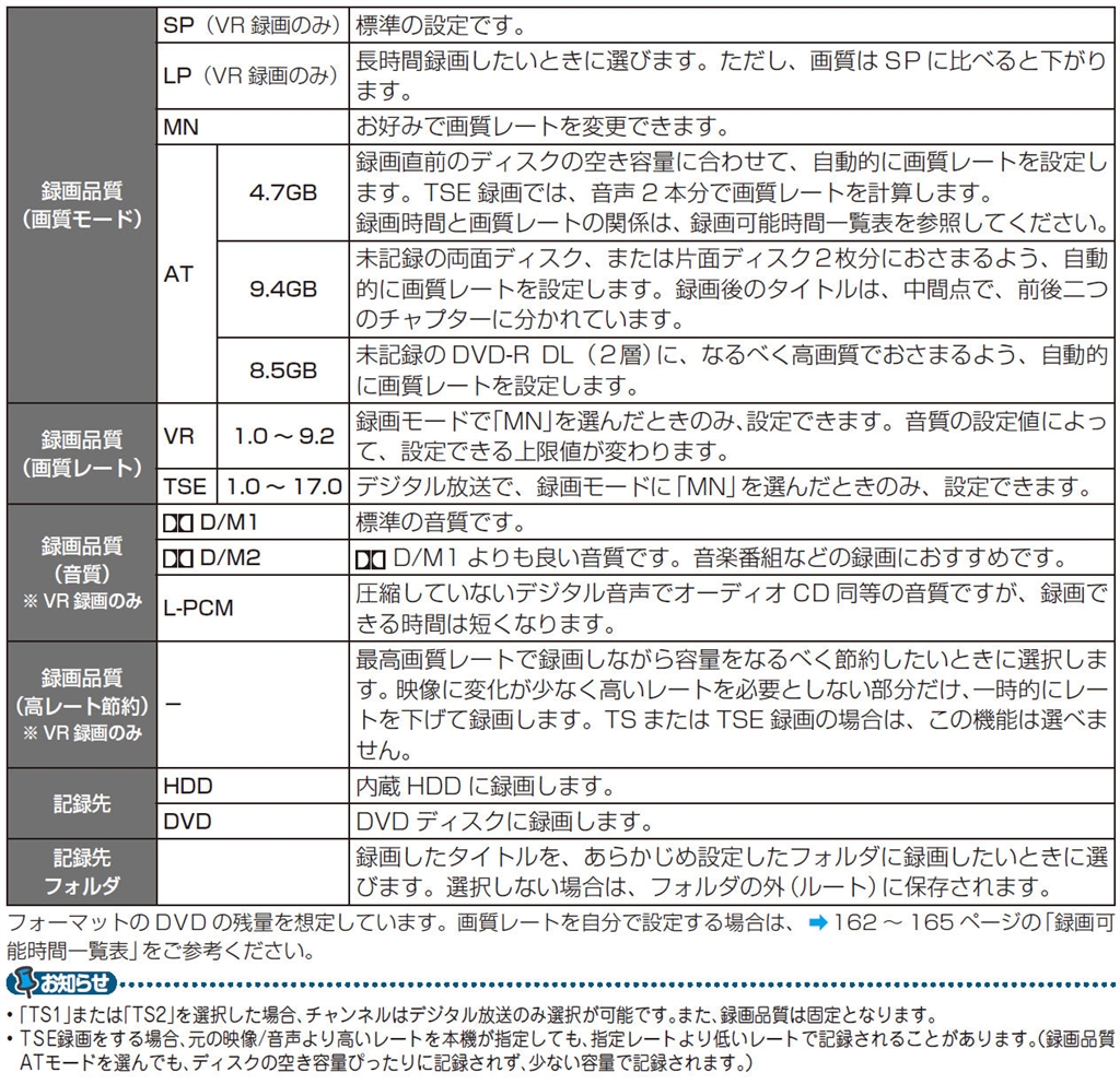 『各モード時の詳細設定事項』東芝 VARDIA RD-S303 名無しの甚兵衛さんのクチコミ掲示板画像3/3
