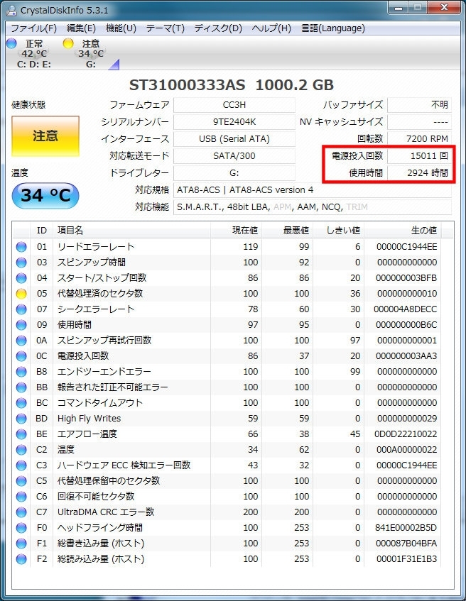 エラー多発のHDD内部情報