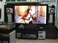 テレビの上と右後にソフトのラック、テレビとラックの間隔が狭く熱対策で小型の扇風機を回しています。