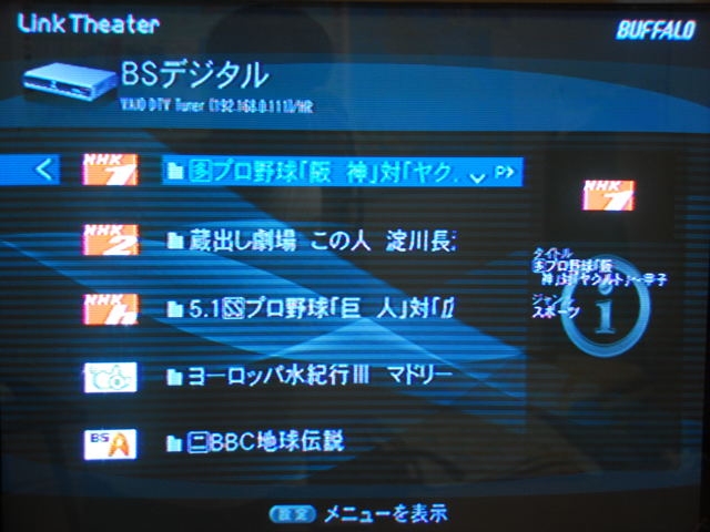 BSデジタルの番組選択