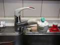 ちなみに水栓は壁出しの複合水栓です。古い家ですので今時のレバー式ではなく、ひねってお湯や水を出すシンプルタイプです。