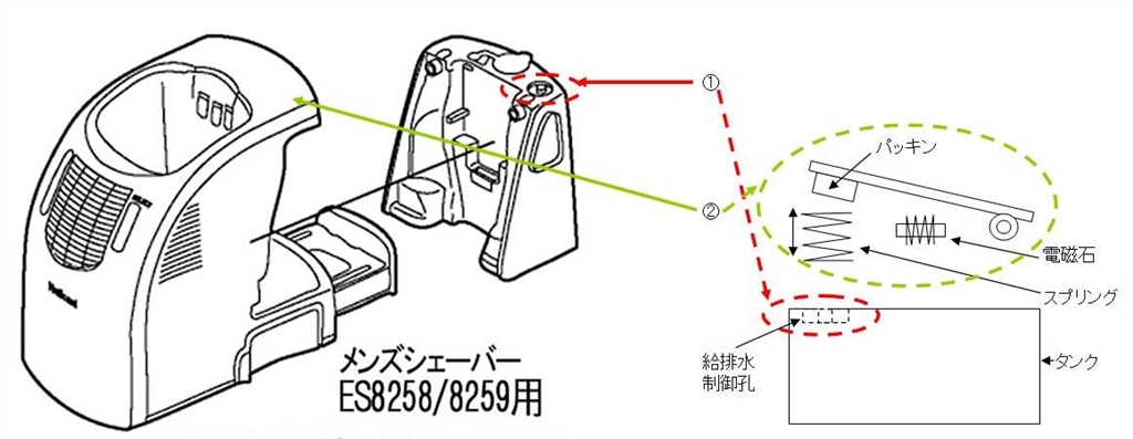『左が製品図で右が模式図』ナショナル ラムダッシュ ES8258 stradajpさんのクチコミ掲示板画像1/1