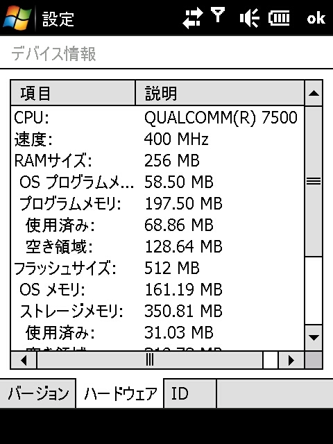 『デバイス情報その2』HTC E30HT au WKFANさんのクチコミ掲示板画像2/4