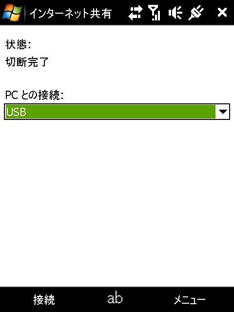 インターネット共有中の画面
