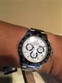 白文字盤は一部安っぽいという意見もあるようですが、決してそんなことはなく、どちらかというと白色の清潔感、さわやかさのほうが上回っていたと思います。また、黒ベゼルとのコントラストがさらに上品さを引き立てていました。