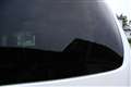 また、3列目のガラスにも電動スライドドアの注意書きのステッカーが貼ってあります。