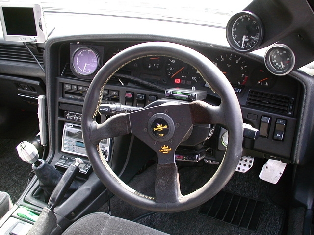 この当時は油圧油温ブーストの3連メーターで運転席エアコン吹き出し口に排気温度計